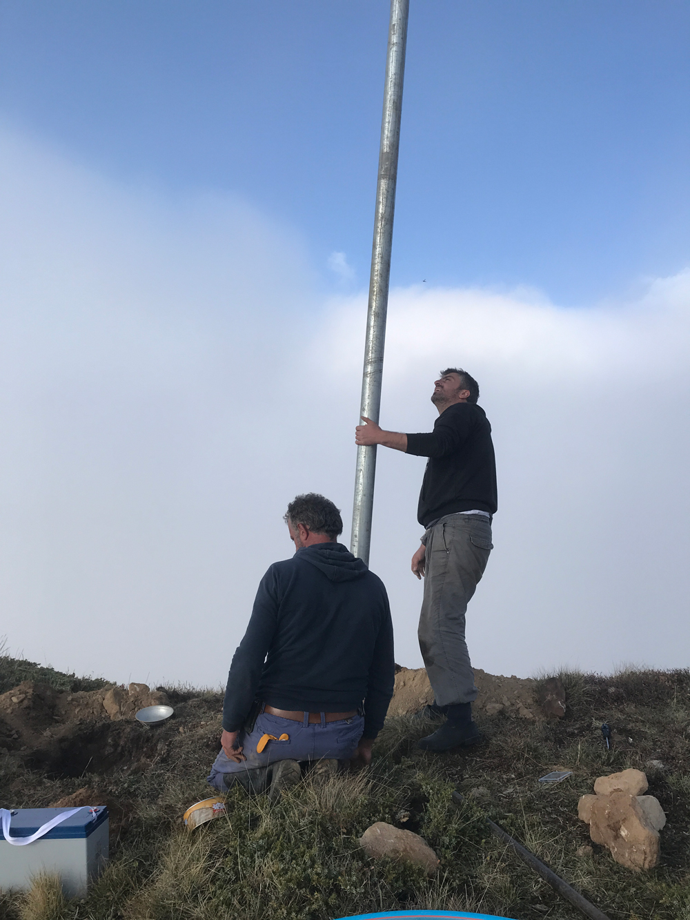 | 29-09-2019 09:00 | Plânladığımız şekilde sabah 09.00 da malzemeyi toplayıp buluşup 3 kişi olarak çıktık yaylaya. Yayla eski evde bulunan 60Kg’lık direği sırtlanıp tuttuk Şako’nun yolunu. Evden Şakonun dibine kadar olan 900 metrelik düz yolu gitmek çok kolay olsada Şako dibinden tepesine olan 500metre yatay 100 metre dikey mesafeyi çıkmak hiç kolay olmadı. Bu kısımı katetmek malzemeyi taşımak tam 5 saatimizi aldı. Malzemeden dolayı 2 yol yapmak durumunda kaldık. Antremansız olan Bülent Karaka ve Ben(Abdullah Sevilmiş) 2 yolu yapana kadar Ahmet Karaka 3 yol yapıp direk ve akü kuyuları açtı. |